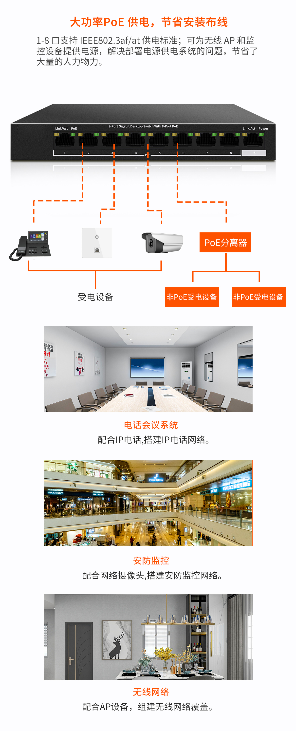 品名:9口千兆8口POE供電交換機